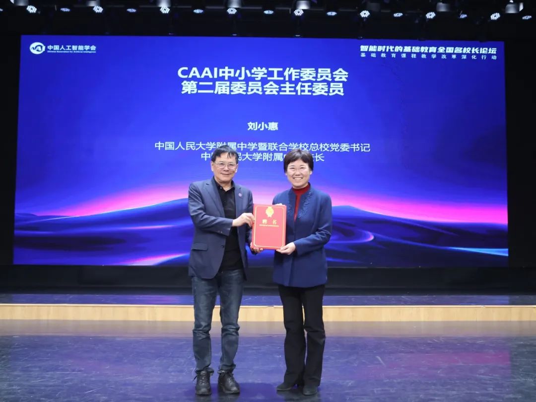 10月27日,由中国人工智能学会(CAAI)主办,CAAI 中小学工作委员会和中国人民大学附属中学共同承办的2024年 “智能时代的基础教育全国名校长论坛”在中国人民大学附属中学召开。CAAI 理事长、清华大学信息科学技术学院院长戴琼海院士,中国人民大学附属中学暨联合学校总校党委书记、中国人民大学附属中学刘小惠校长出席论坛并致辞;CAAI 副理事长、中国科学院自动化研究所副所长刘成林研究员,对外经济贸易大学信息学院院长熊璋教授,首都师范大学田慧生教授等专家和领导,以及来自北京、杭州、成都、武汉、洛阳等城市的多位中小学校长、党委书记参加了本次论坛并做主题报告。