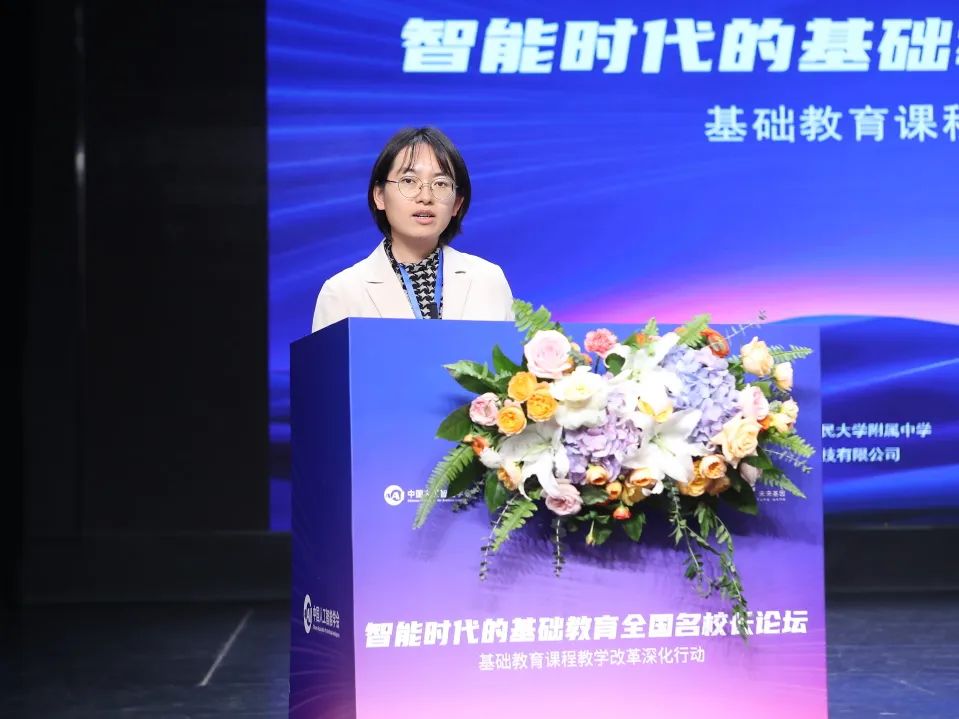 随后,中国人民大学附属中学梁丽平副校长分享了人大附中课程教学改革的实践经验。梁校长介绍,人大附中致力于将人工智能与教育深度融合,教师们开发了基于AI的跨学科课程,帮助学生学会利用AI工具,并通过小故事、社会实践等方式,将人工智能和道德教育有机结合。此外,学校推动“AI+X”教学模式,如语文教师引导学生通过AI工具提升议论文写作,强调在人工智能的辅助下学习提问和深度思考的重要性。这一系列举措旨在为智能时代培养具备创新意识和跨学科素养的时代新人,使学生在学术上勇于探索、敢于创新。